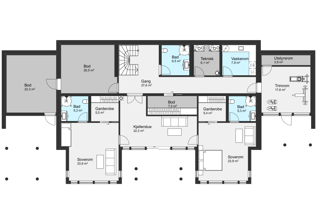 Lindås er en bolig for storfamilien – og litt til. Med over 565 m² fordelt på tre etasjer, er det rom for alt fra hobbyer og trening, til gjester og hverdagens små og store behov.